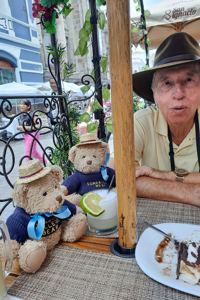 | A trip into down town Quito with the padres , where we found .. | Sombreros Lopez who make bespoke hats for gentlemen | ..Armed with our new hats, we found a cake shop.. | .. before heading to the airport and a flight to Galapagos |