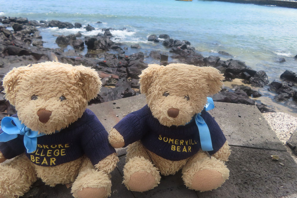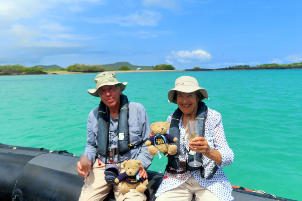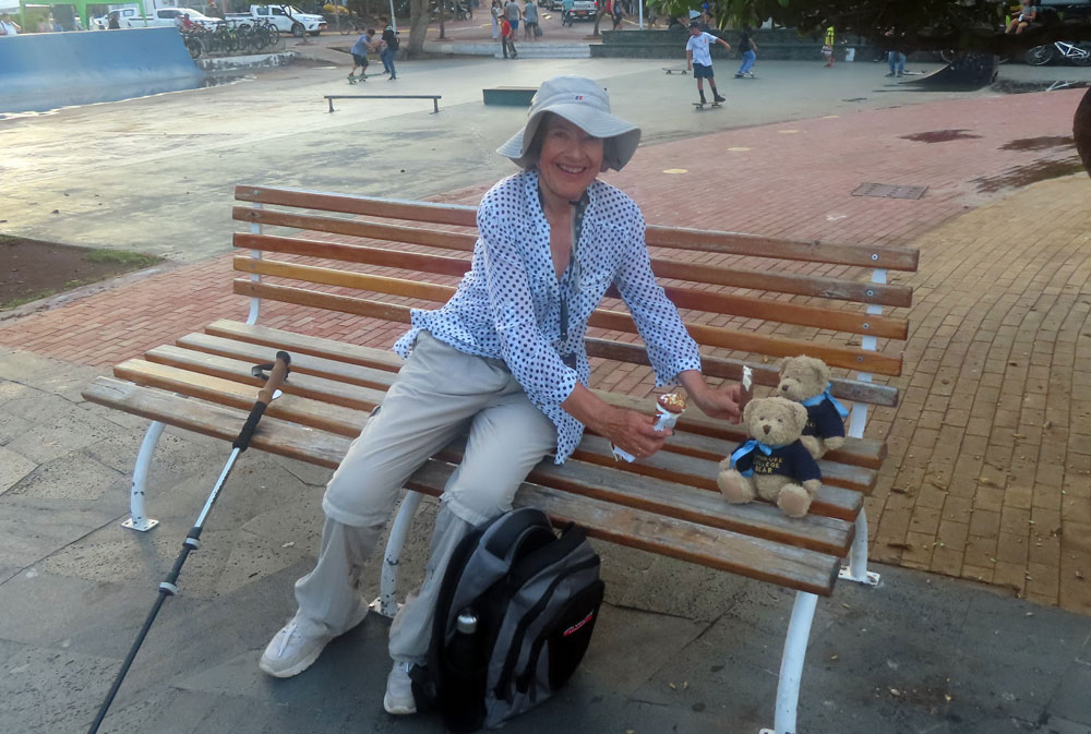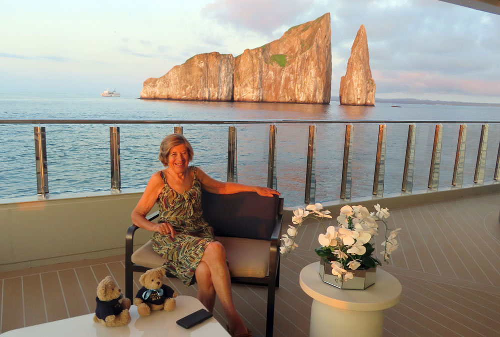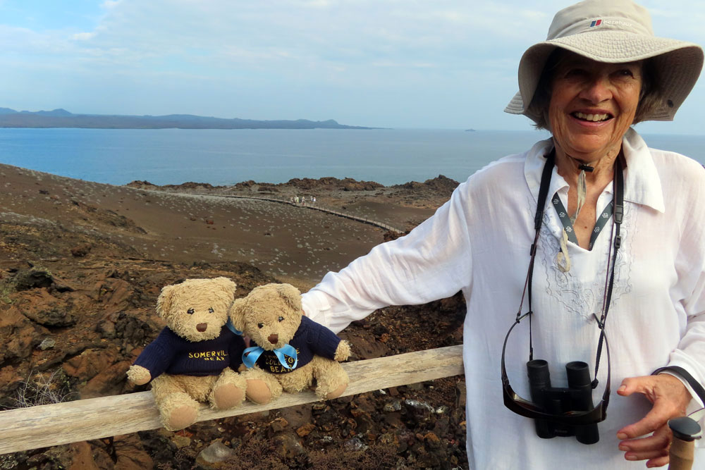 | ..for a last swim before heading back to the ship | You might deduce the firepit is not lit, otherwise scorched bottoms | ..On the harbour on the way home, there were lots of sea lions | We found Charles Darwin at last. Still working on another book |