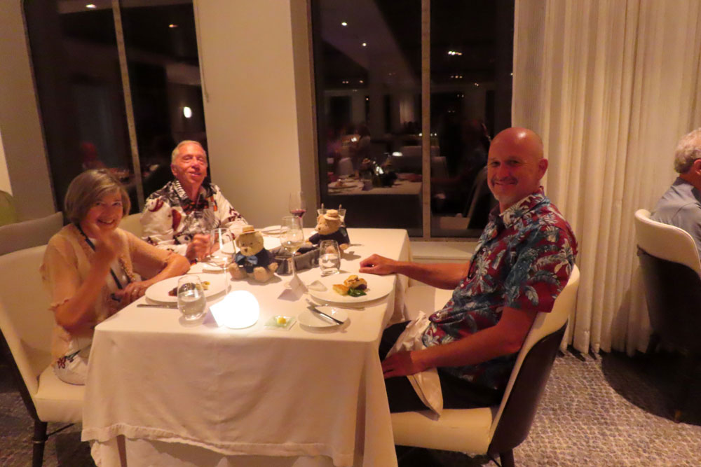 | ..but we made it and posed for photos at the top, | Not a bad view, ay ! | The padres got wet suits. We braved the cold sea without them | Paul, one of the guides, had dinner with us |