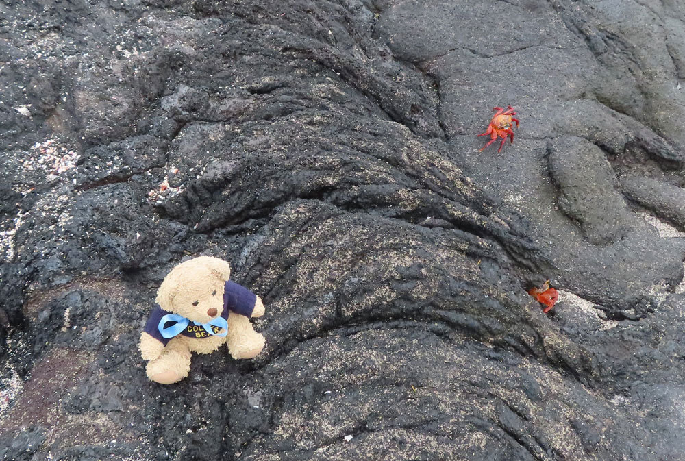 | We marched across rugged terrain, leaping wide cracks .. | .. avoiding these nasty looking red crabs ... | .. and the occasional sea lion, | ..well lots of sea lions. |