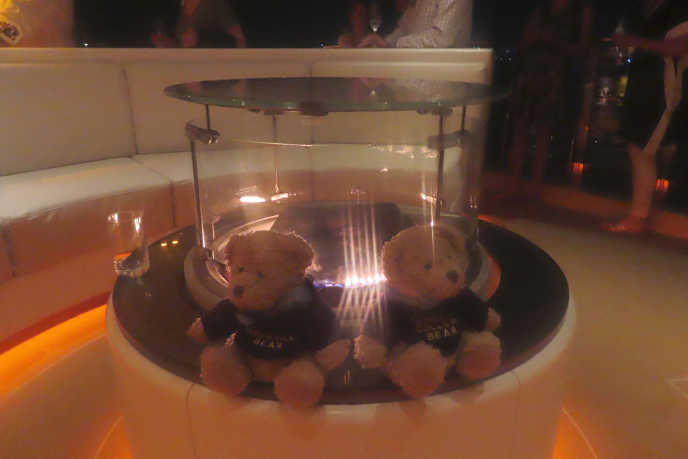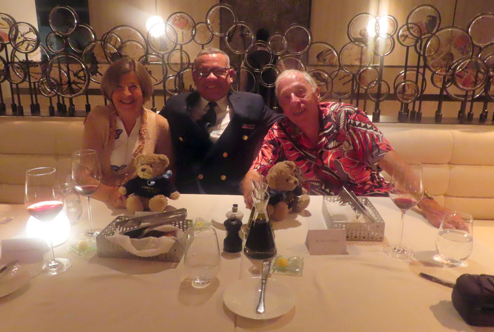 | Our cabin on board the Silver Origin | And the rarely lit fire pit | The Captain as so impressed with our steering of the ship, that.. | He invited us for a cosy tete a tete dinner to pick up tips from us, seasoned travellers with 505 days ! |