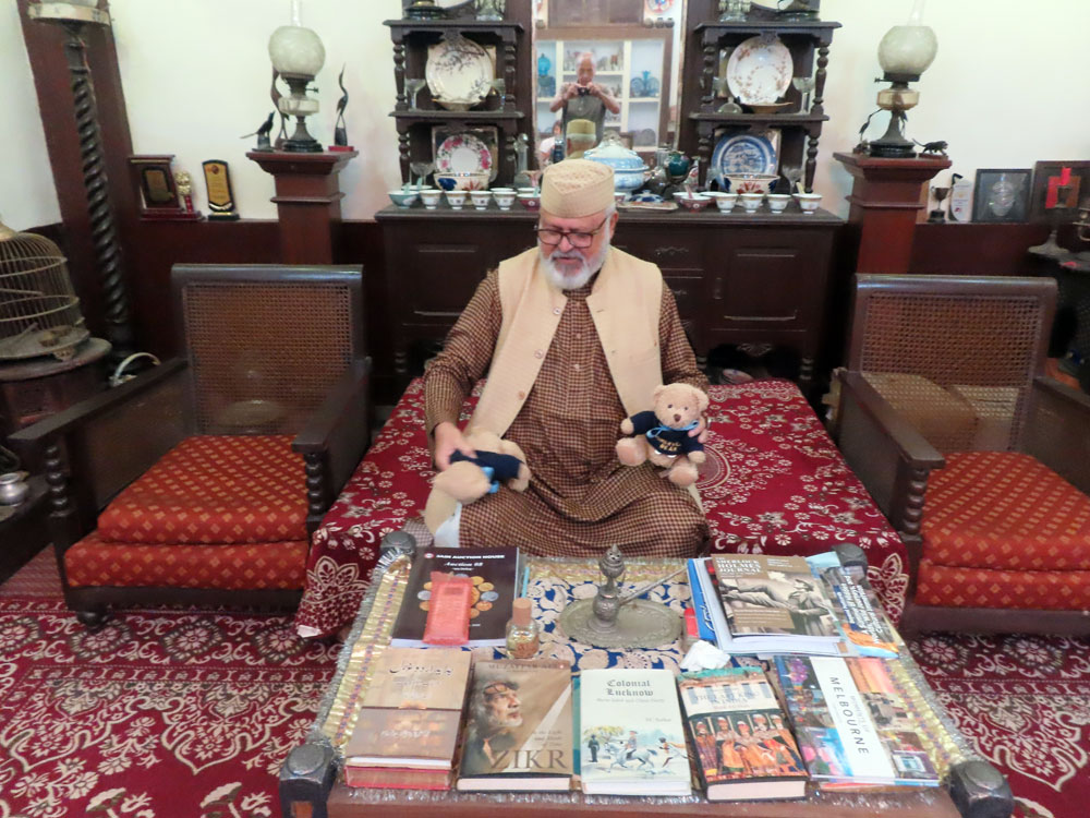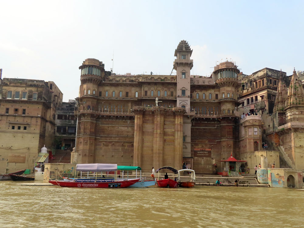 | A mini Taj Mahal on the way to Varanasi | Our palace hotel at Varanasi right on the Ganges | The doorman at Taj Lucknow | We gave an audience to The Nawab of Lucknow |
