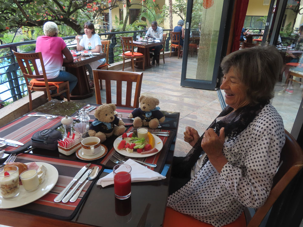 | The madre was tired and we had to put her to bed in the hotel | But we were all up in time to stuff ourselves for breakfast | Even the Padre was allowed a little breakfast | Then into out 4*4 with out driver Jean Luc, who needed a little help with directions from time to time |