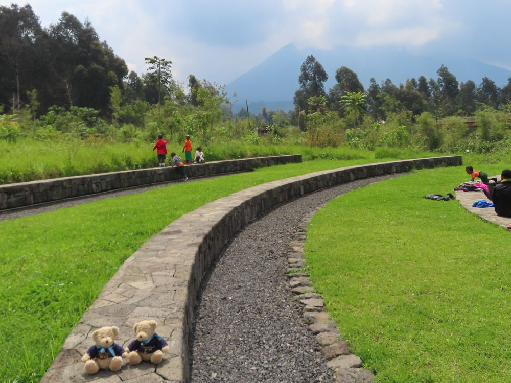 | We stayed at this hotel. Called itself Mountain Gorilla Lodge. | And there were a lot of Mountain Gorilla artifacts around . | Even a big concrete statue in the garden | And an even bigger one in the National Park |