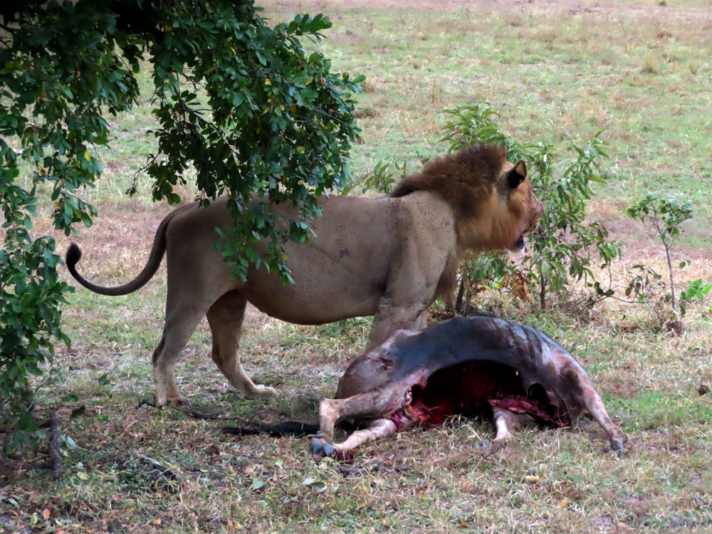 | Lions are rough looking critters .. | ..and this fellow was tucking into a whole Gnu | Mummy lion was waiting her turn to take lunch | There they are sleeping in the sunshine |