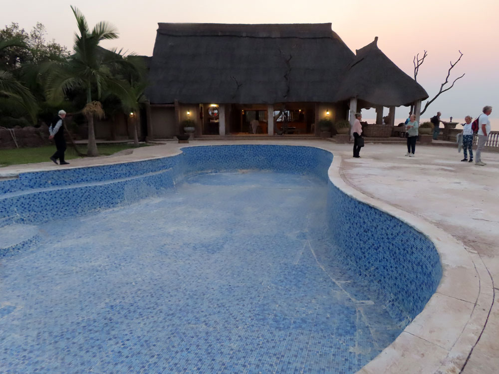 | The lady of the tent has a bath | ..and the lap of luxury with our own private pool. | Here we are on lifeguard duty | We give GoGo the Lodge manager some advice on running the place. She was very grateful |