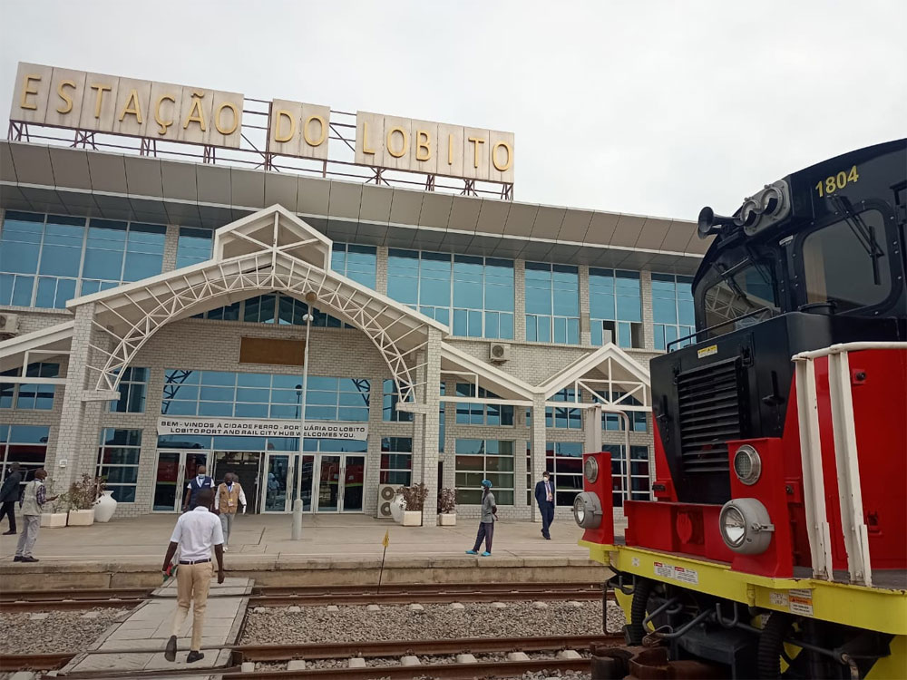 | The final morning and the train runs down past baobab trees.. | ..and scenic river valleys, to the Atlantic. | The police make sure that we get to Lobito safely | We get to the Terminus at Lobito |