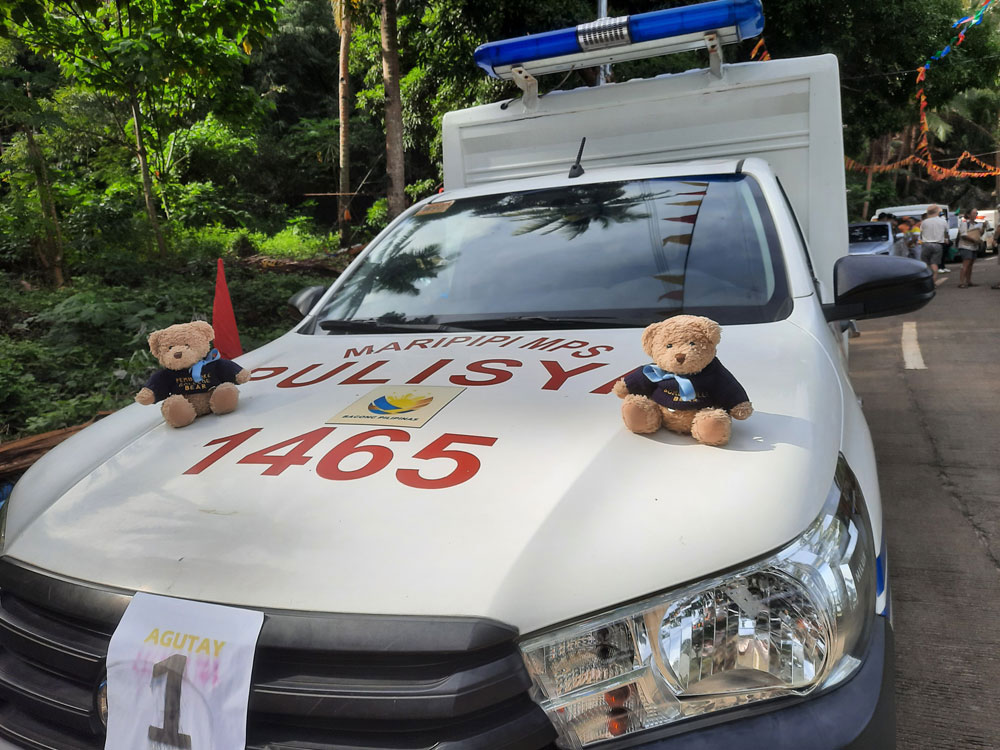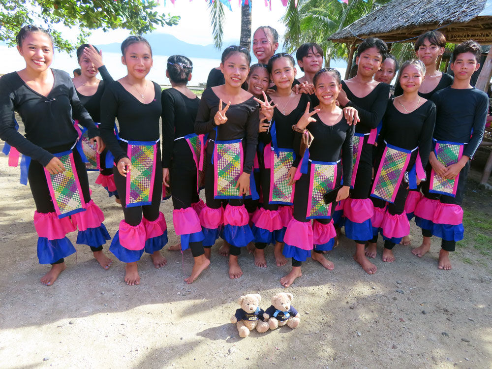 | We saw Tarsiers - cuter even than we are | We got close to driving a police car, but they stopped us | We survived really bad weather | These young ladies bearnapped us, we had to be taken back |
