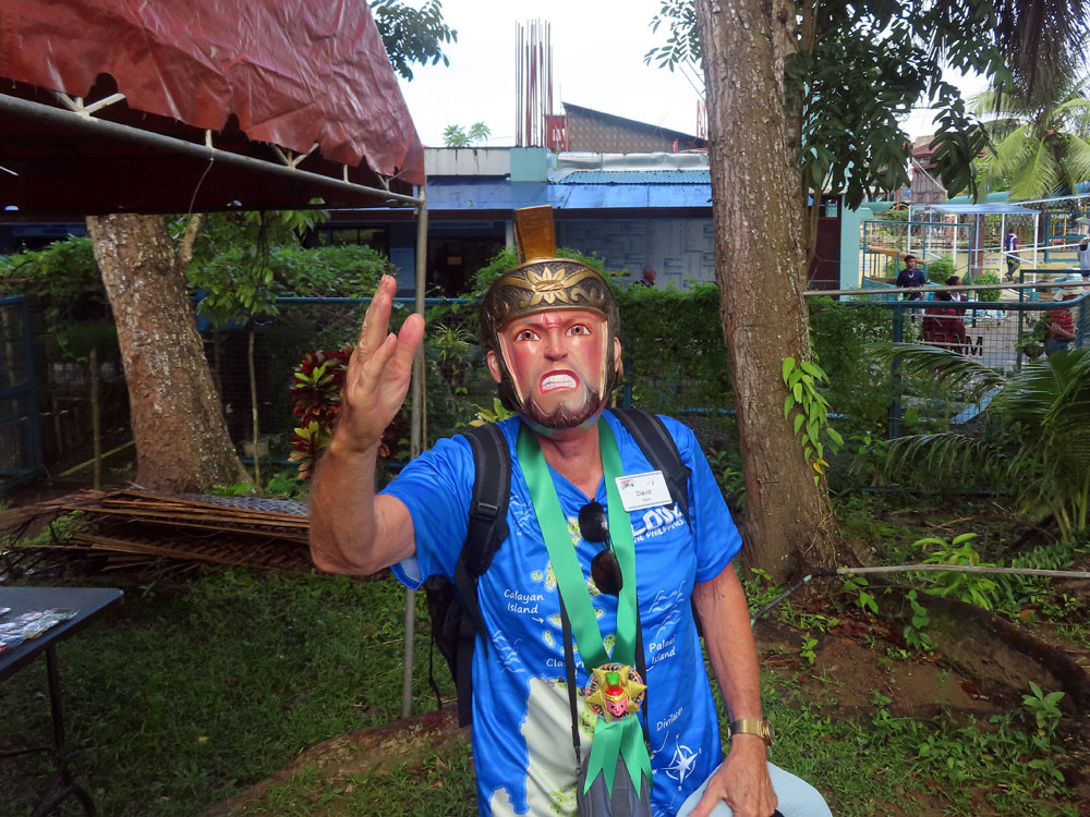 | There was a lot of eating to be done | We shared a beer with the chief engineer | The old fellow looks really fierce in this wooden mask | Manila Airport is rated as one of the worst in the world, We agree |