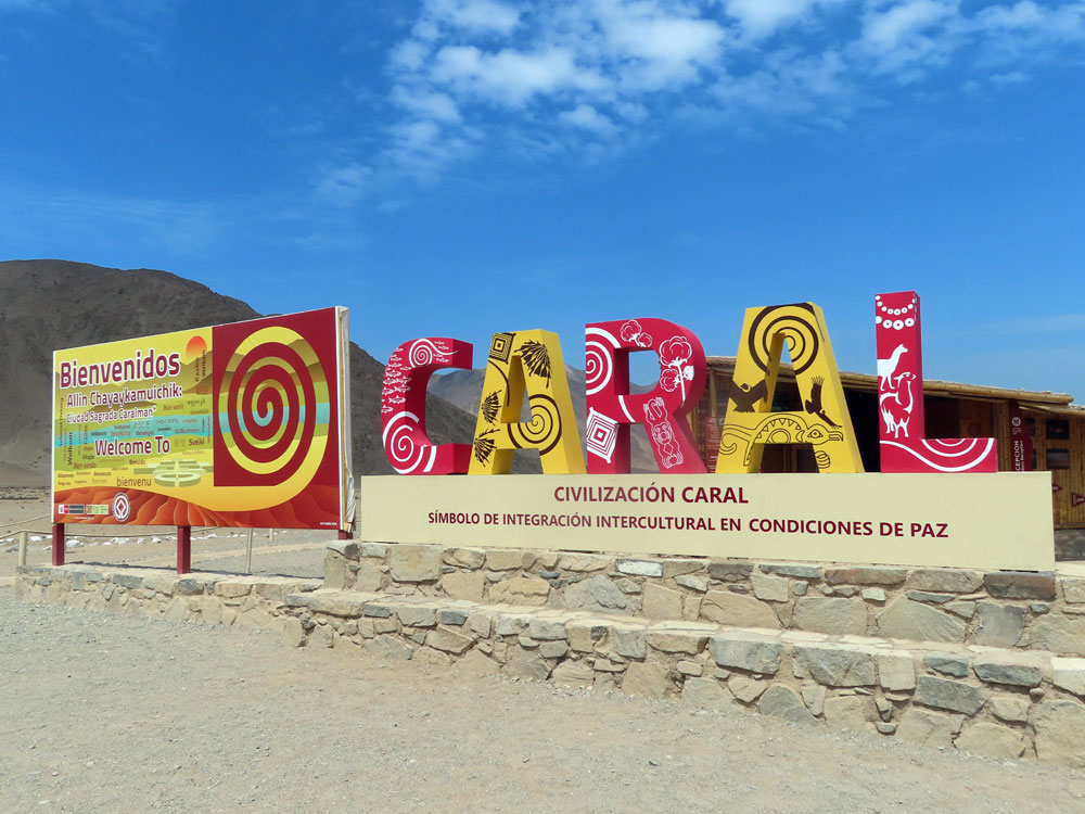 | We did get to ride on this yellow Tuk tuk ... | ..it took us down a wild "road" to get to Caral | Somebody had invested in some glitzy signs |