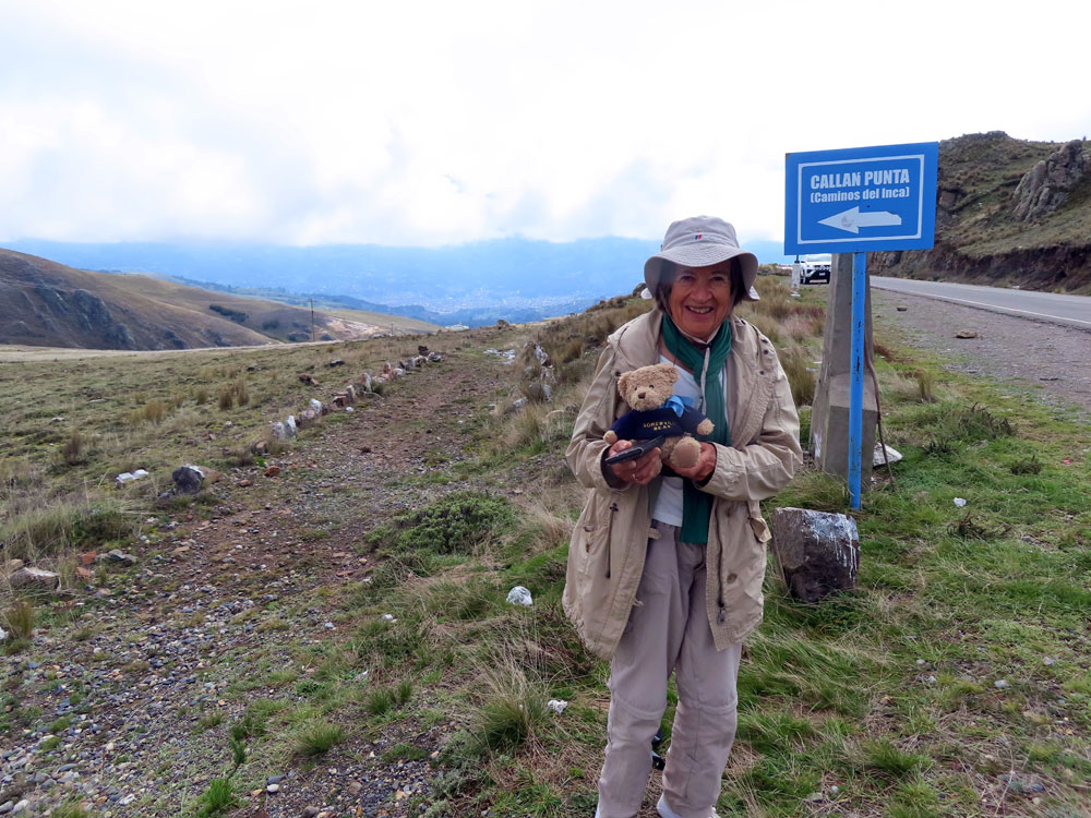 | Family photo for their album | The madre found the going a bit heavy. Well it was at altitude. | For us it was easy, but we did try not to get too far ahead | Then back in the car on Peru dirt roads - they all seem to be dirt |