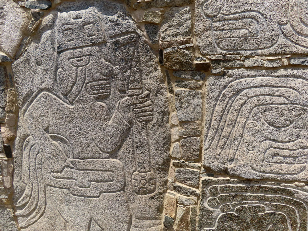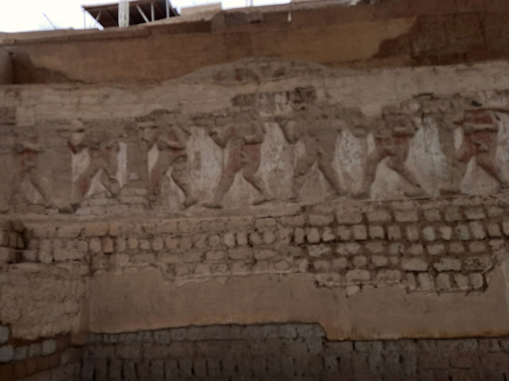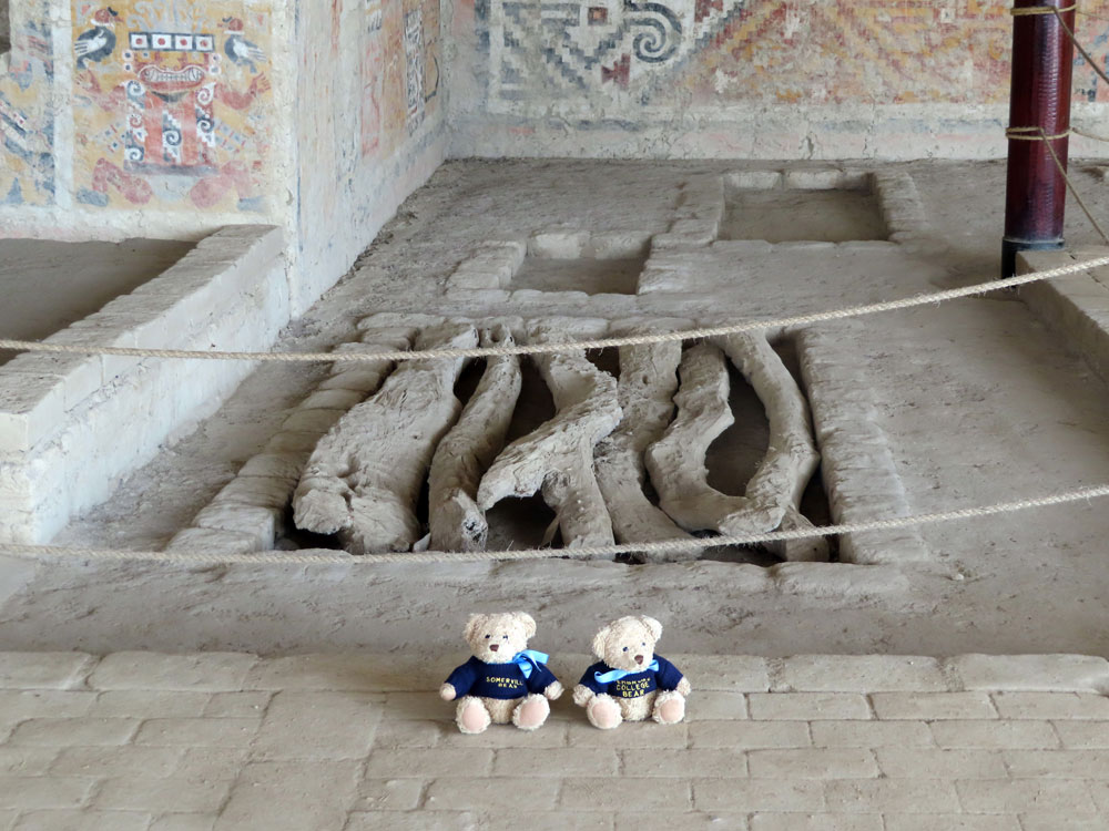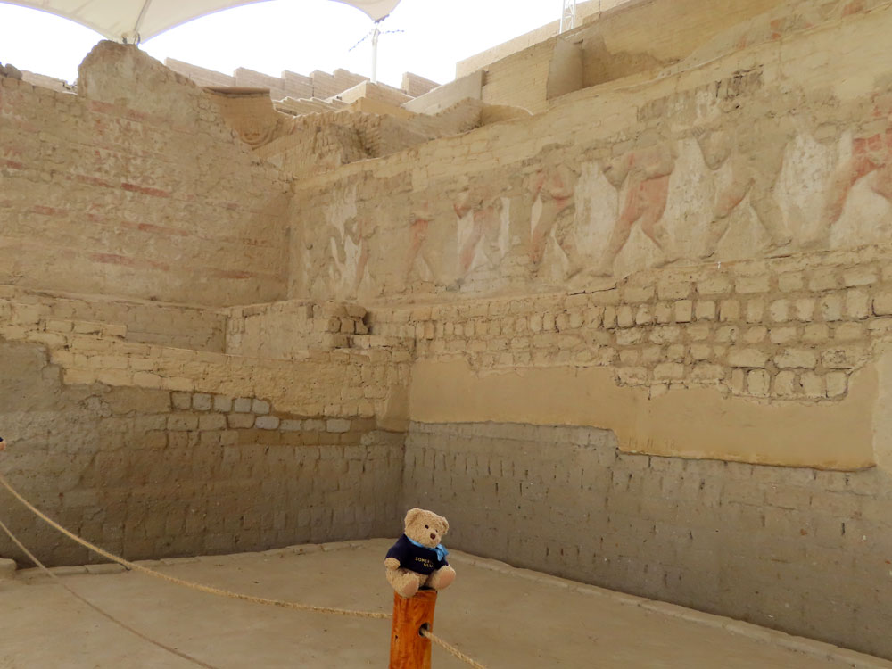 | This is where the Lady of Cao was buried | The temple wall paintings are still there.. | and are really very graphic. | And this is the spot that they found her mummy |