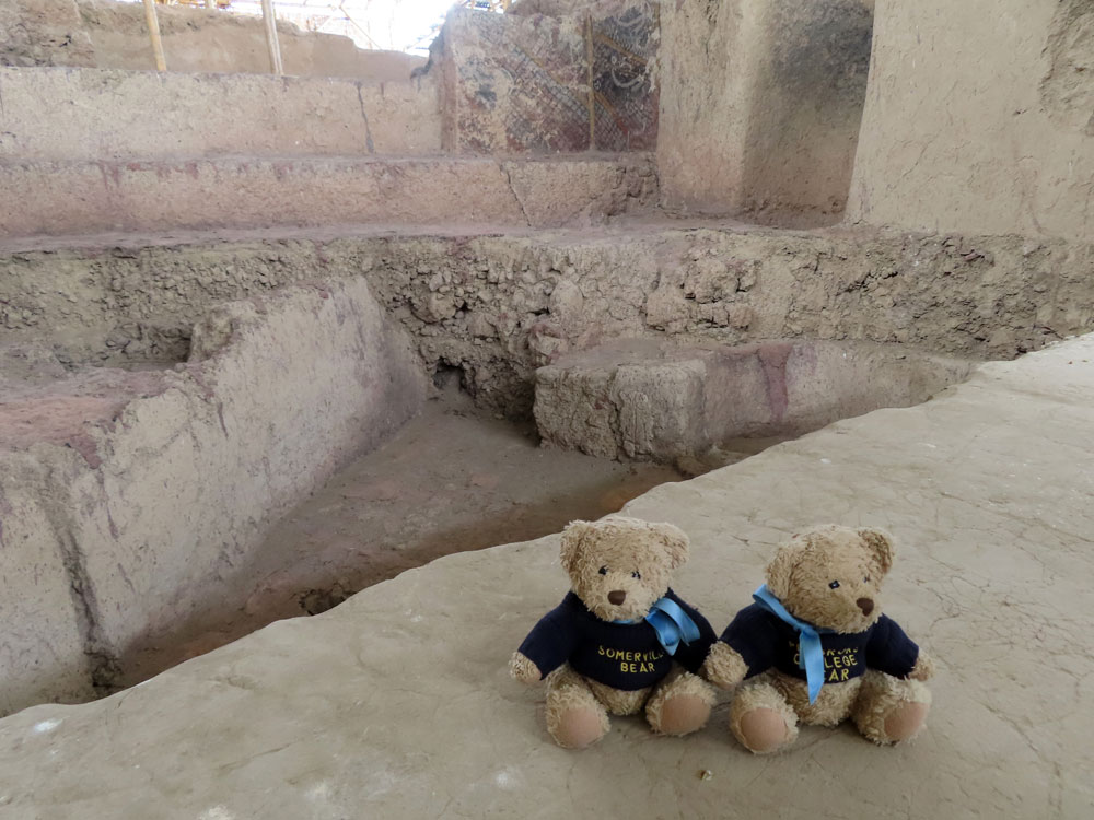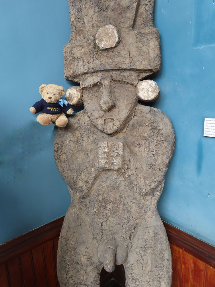 | Incas like the Lord of Sipan, apparently looked like this | He didn't frighten us though, we are brave bears | A reconstruction of his tomb with all the gold bits | and the mummy had been flattened and had to be restored |