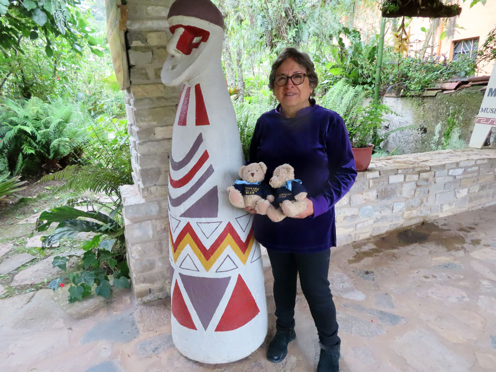 | Laymebamba museum had the contents of unique sarcophagi | 200 mummies in this room behind us. That's a lot of mummies. We usually only see the one mummy at home | The lady Director of the museum wanted to talk to us about the finer points of mummies as we were well known world experts |