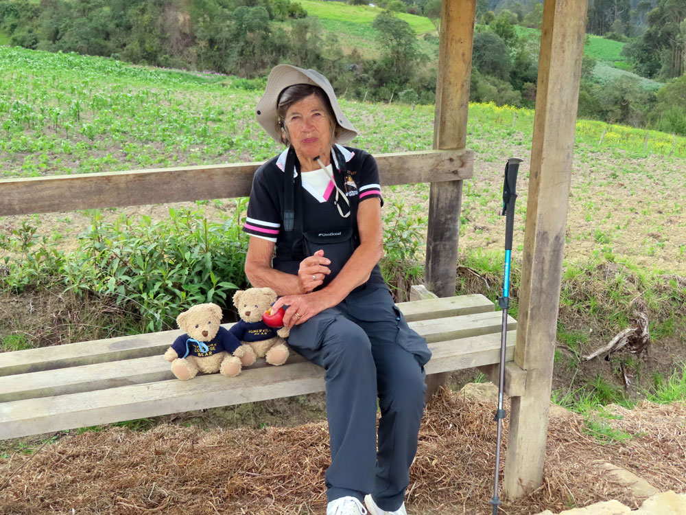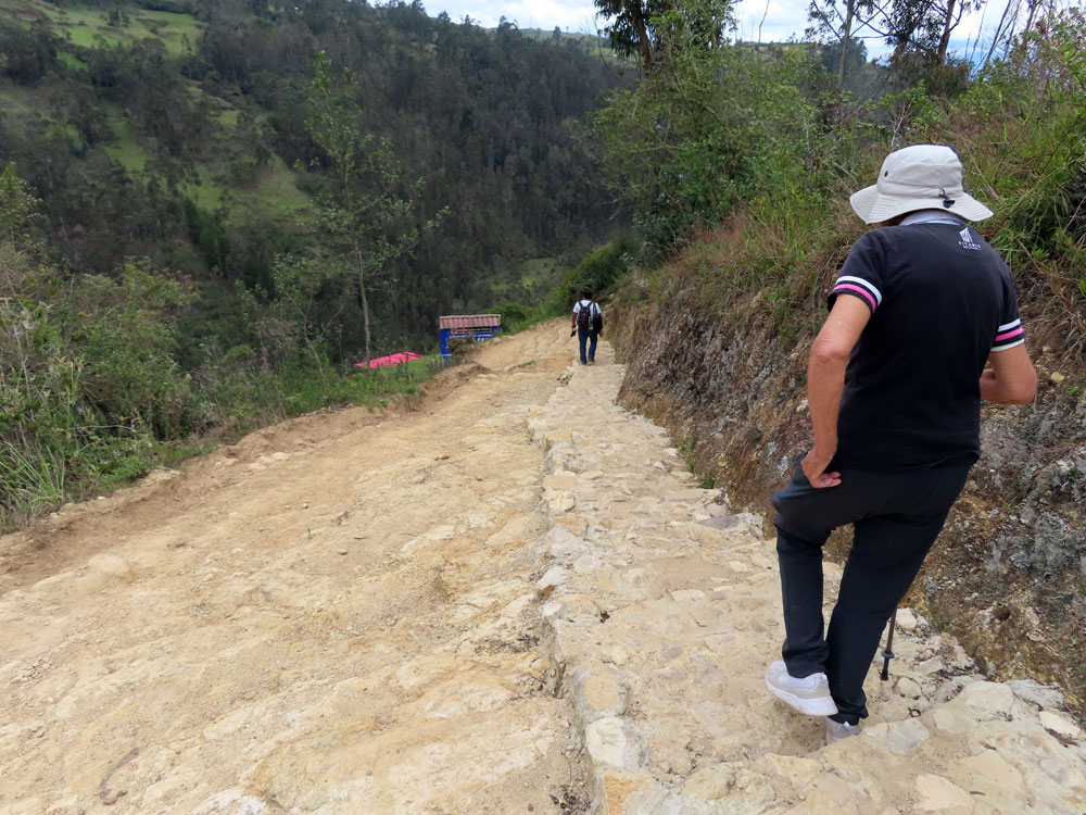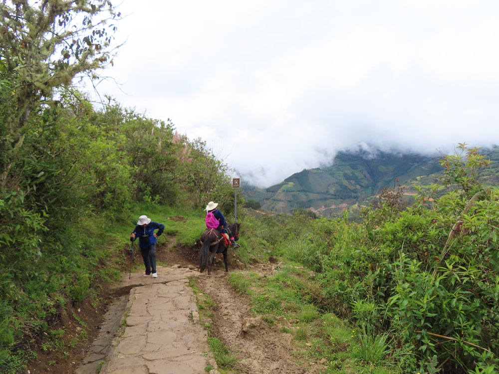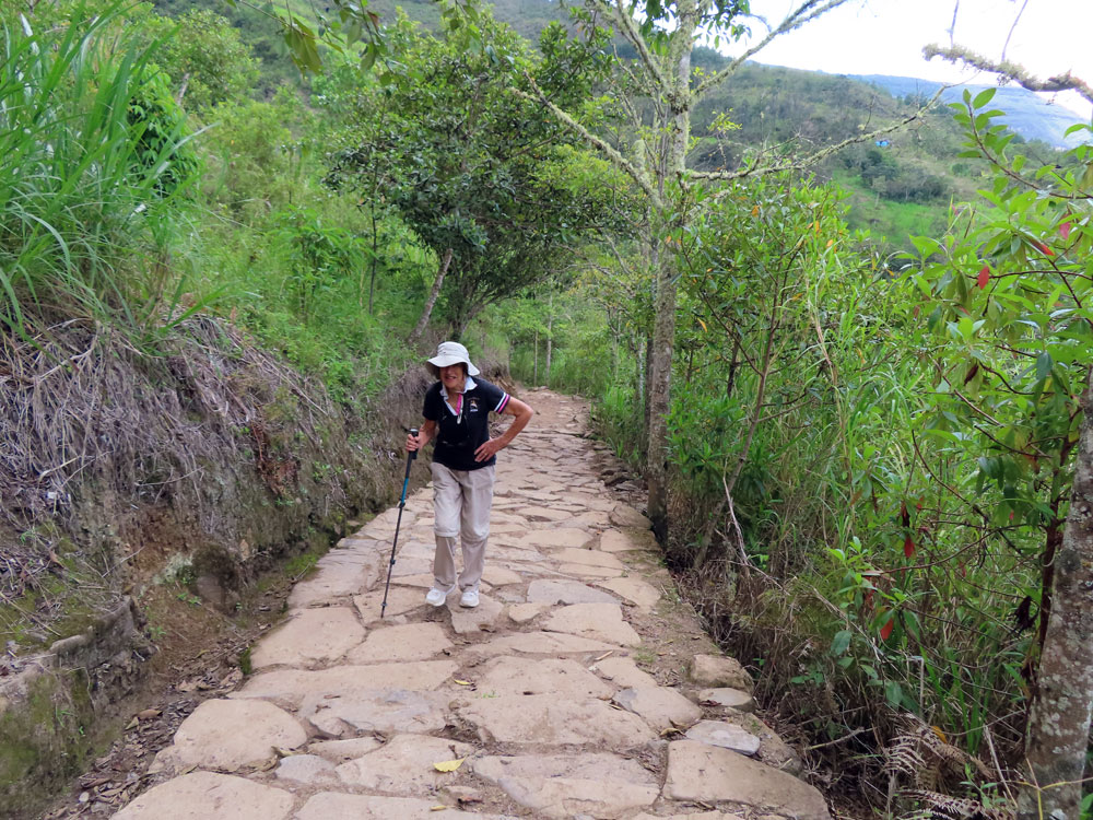 | Odd thing about Peru is you have to walk miles to see things. | Here again , the action was all uphill | We pause for a rest beside the track | This lady appeared from nowhere and walked in front of us |