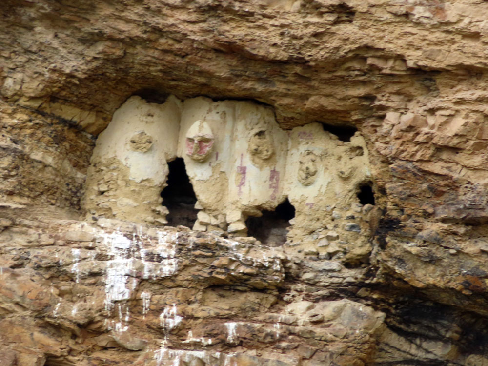 | There, at a very agreeable restaurant by the river .. | ..we enjoyed lunch and a glass of passion fruit juice | More sarcophagi were spotted on the cliffs, as we wended | .our way to our next stop |