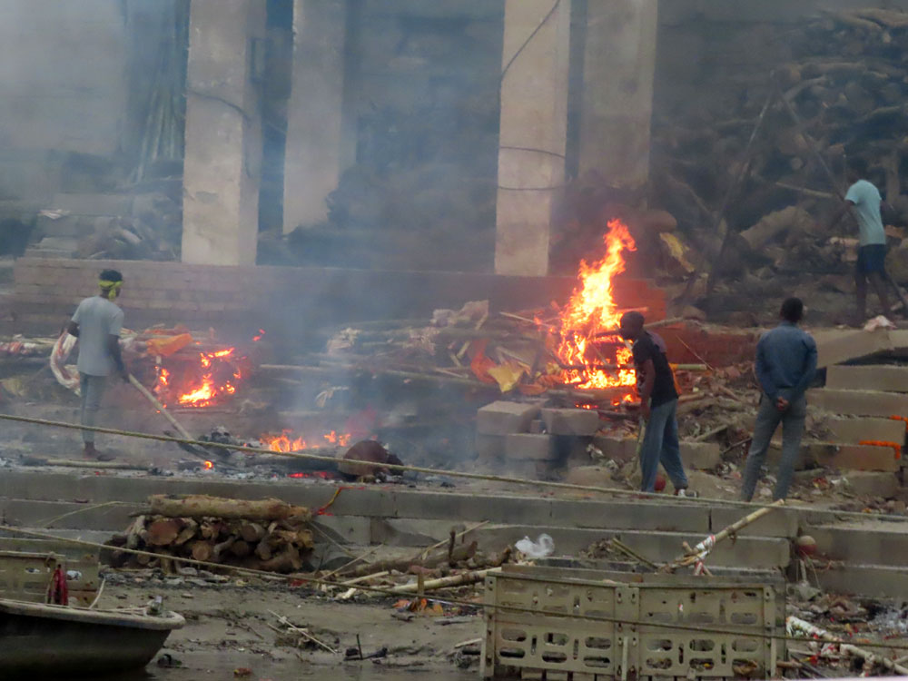 | Really odd this. They cremated about 100 bodies a day on bonfires beside the Ganges | There was a whole forest's worth of wood used every day | ..the bodies kept coming, and they kept burning .. | ..burning till far into the night |