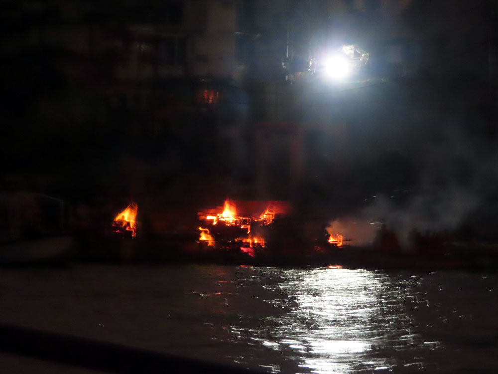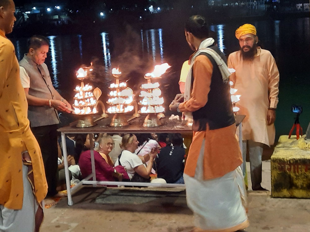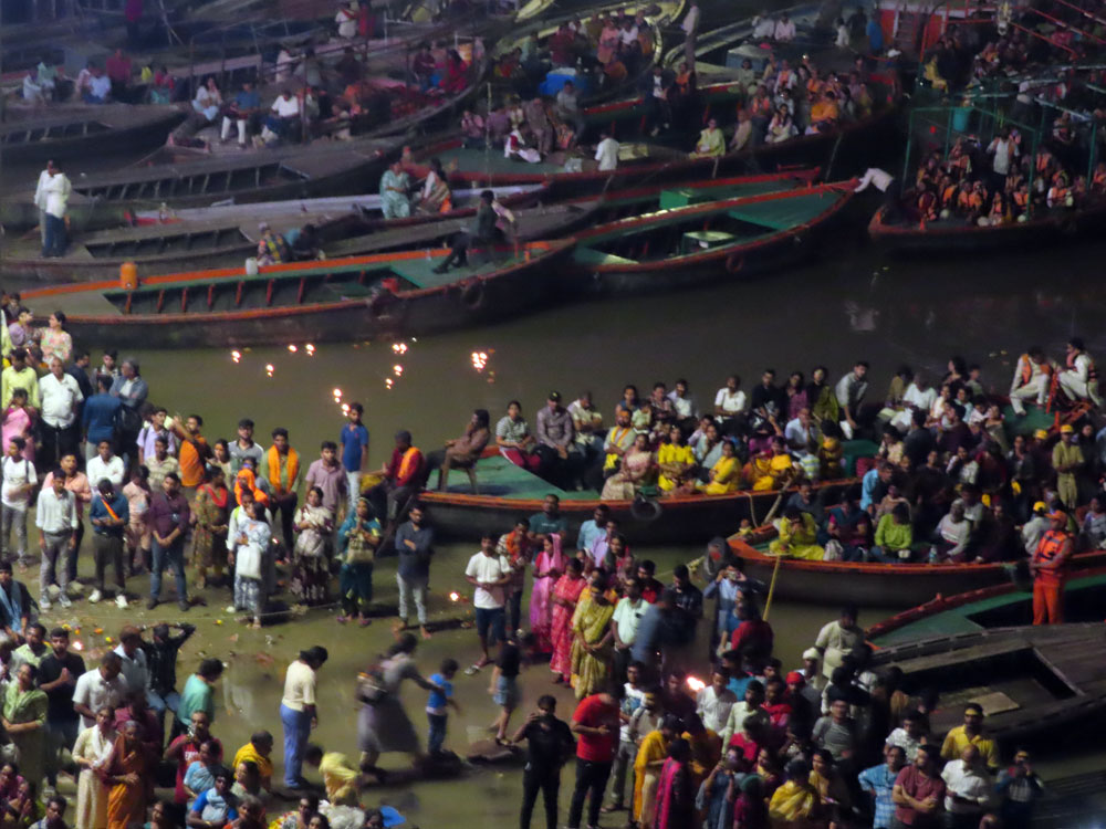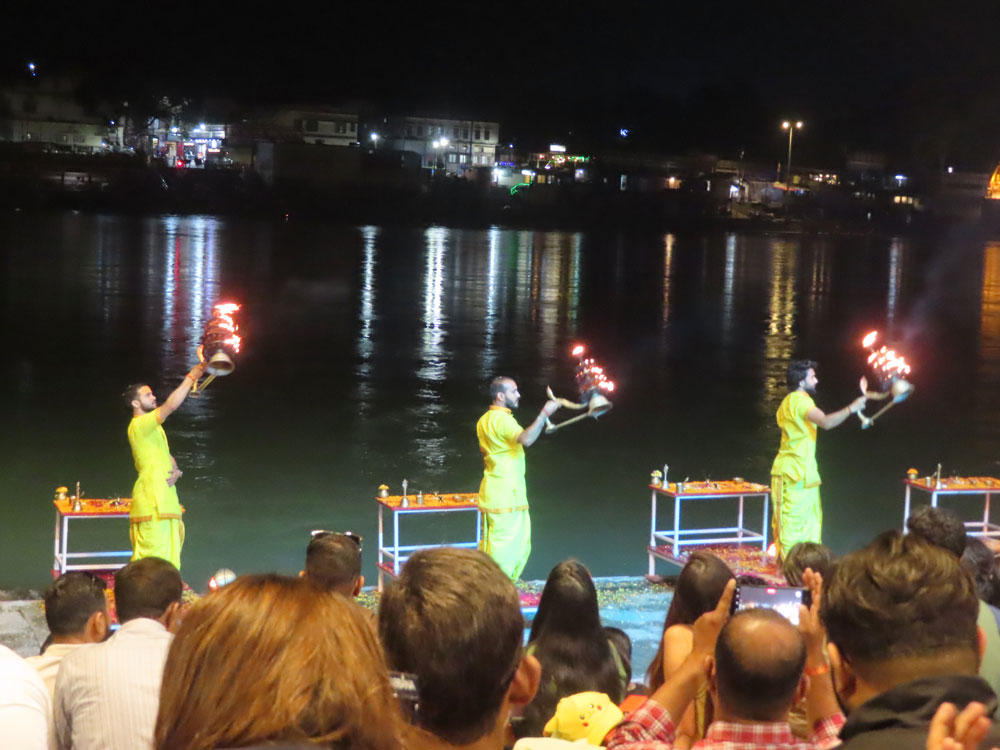 | Every night they blessed the Ganges with a candle waving show | ..These fellows must have practiced hard .. | ..as there were eight of them waving burning things around .. | ..in unison for over an hour |