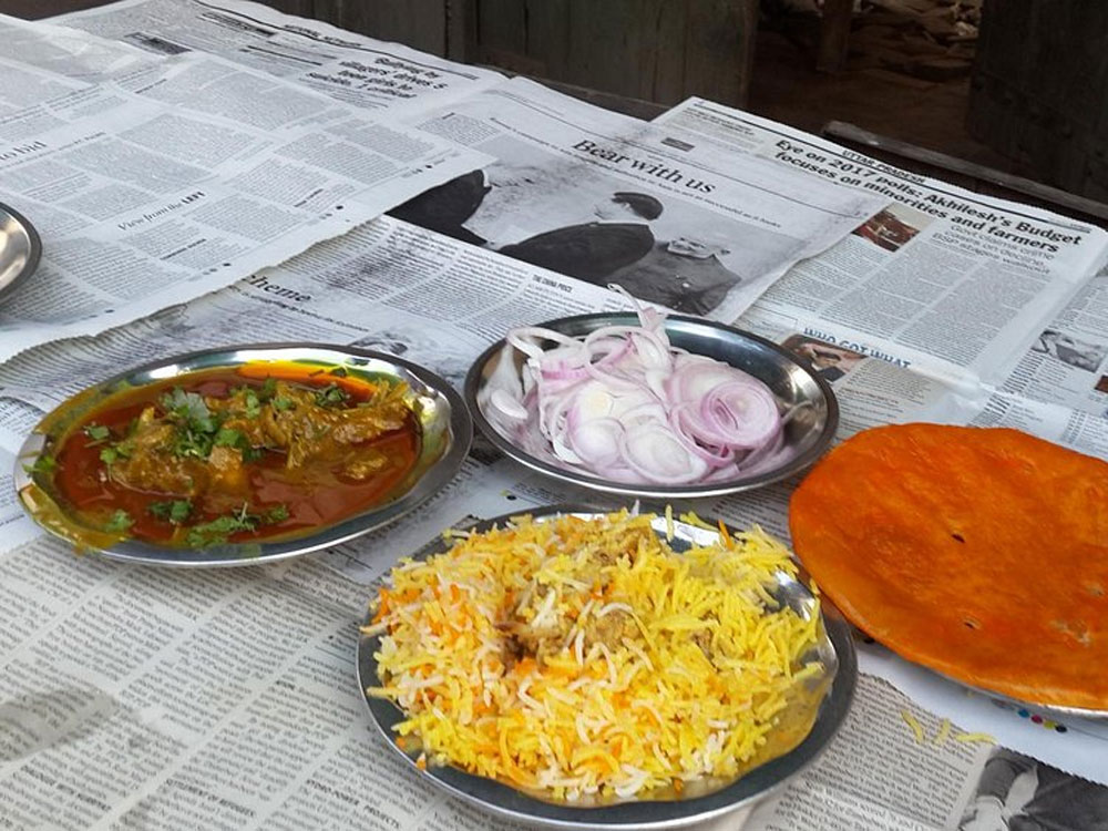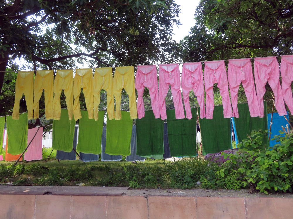 | They washed these in the dirty river. Yellow and pink underpants? | Then they took us to another school. Perhaps they will enrol us | We got distracted by this fine gun | When the Nawab heard we were in town, he wanted a photo |