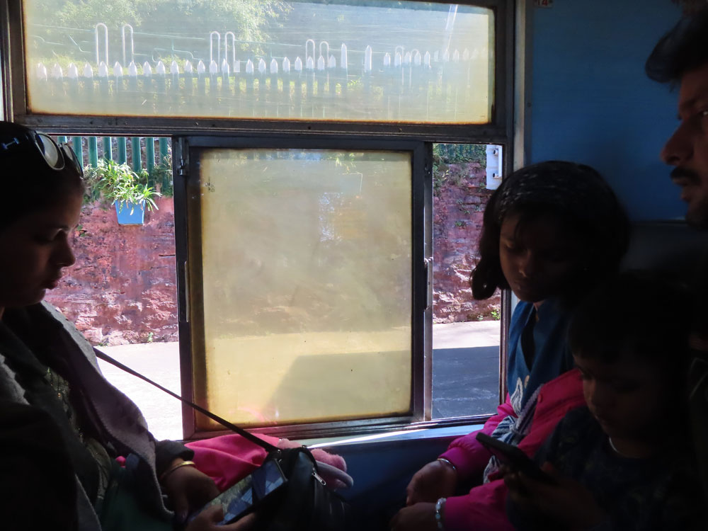 | Shimla station waiting for the train | ..ready to start | The windows were completely opaque | ..and we could not move for suitcases |