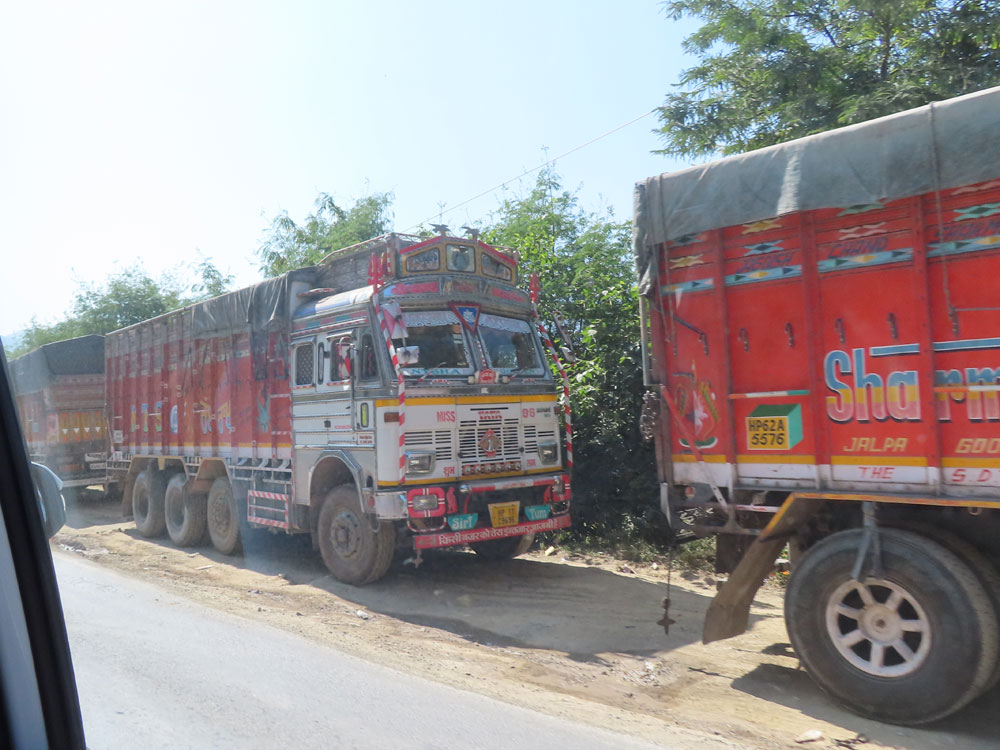 | Along the way we say hundreds of lorries waiting to pick up | ..cement from a factory | We had the occasional stop along the way | |