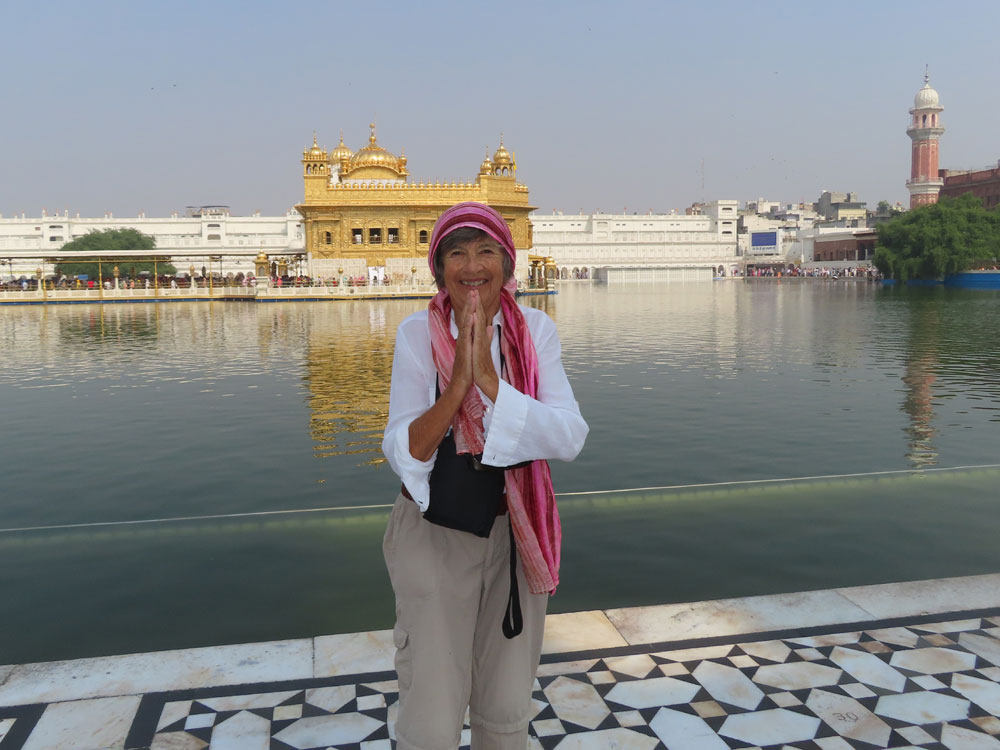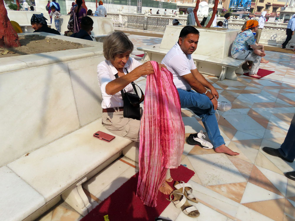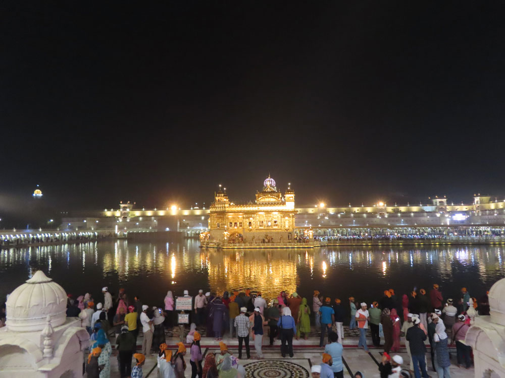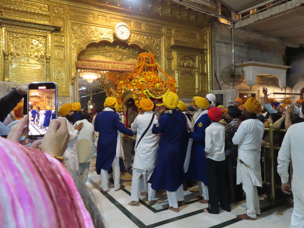 | We settled in at the Taj Amritsar, not the best Taj for us | We took this of the padres, with the compulsory headgear .. | .. at the very beautiful Golden Temple at night. The ceremony | .. literally wraps up their holy book and puts it to bed |