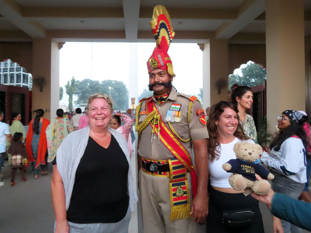 | ..they had particularly striking headgear. And were very fierce. | But individually they showed a softer side. Pembroke just missed out on getting the soldier's autograph | Pembroke kept an eye on the border gate to ensure no Pakistanis | sneaked into India |